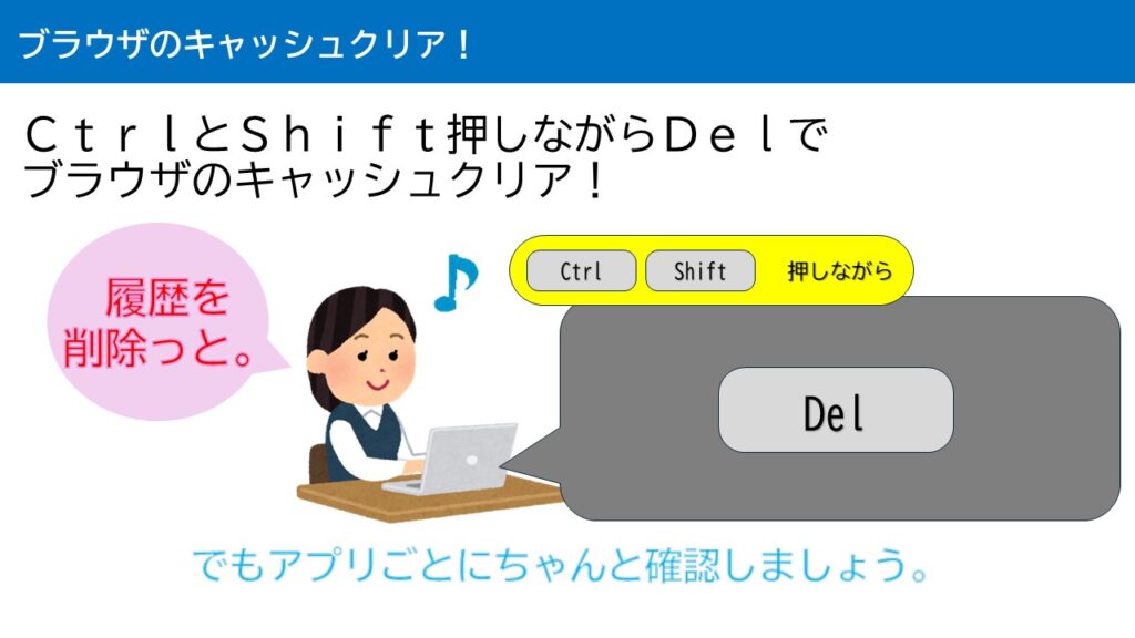 ブラウザのキャッシュクリアは「Ctrl+Shift+Del」!